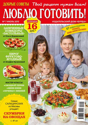 «Добрые советы. Люблю готовить!» — журнал о вкусной еде, не похожий на другие кулинарные издания. Все опубликованные в нем рецепты присланы в редакцию самими читателями. Каждый рецепт прошел конкурсный отбор, а его автор получил денежный приз. Ежемесячно на страницах журнала — более 100 коронных блюд, которые многократно проверены опытными хозяйками и которые можно смело брать в свою коллекцию рецептов тем, кто любит баловать родных и удивлять гостей.